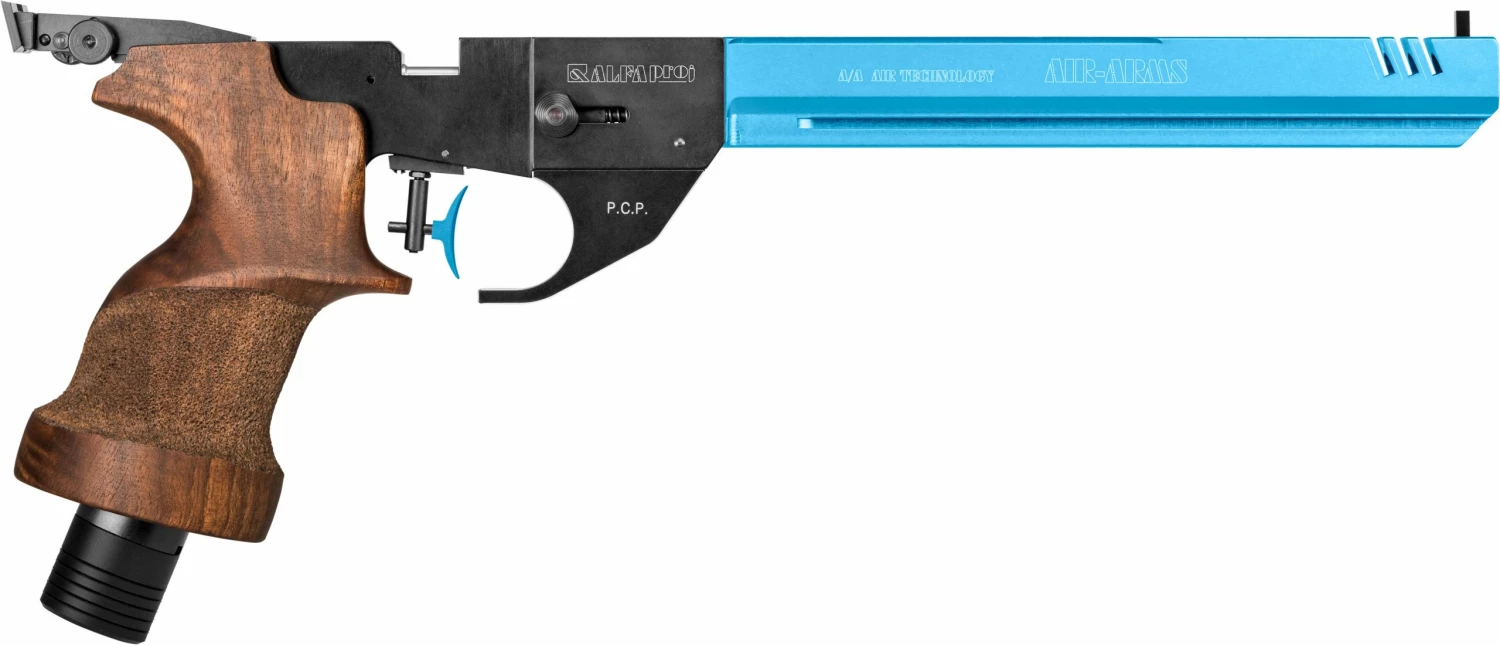 The Alfa Sport Pistol has more performance features than many airguns twice its size, and twice its cost. Within its recoilless, pre-charged pneumatic action, a power regulator has been installed to maintain consistency of muzzle energy and because the air reservoir is in the pistol’s stippled walnut grip, the Alfa’s balance is excellent and assists on-aim stability.