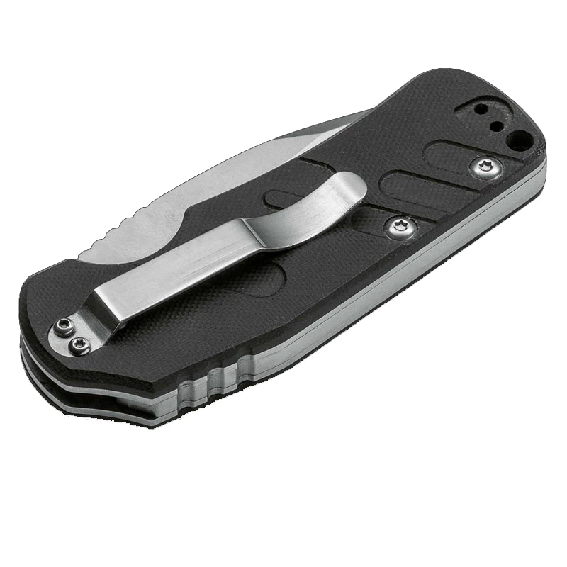 Increasingly strict laws world-wide that govern the carrying of knifes continue to restrict the choices for knives. The Worldwide – based on a design by Chad Los Banos – represents a configuration whose features would appear to pass legal carry requirements in most countries. The slipjoint knife has a very strong spring to ensure safe operation even without a locking mechanism, a feature further enhanced by the pronounced 90° stop of the blade. Steel liners and G10 scales form the handle that carries the four-way clip. With lanyard hole.