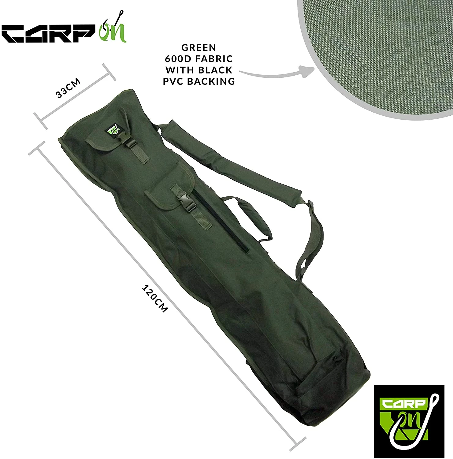 600D PVC – GREEN 600D fishing rod Holdall with black trim and black PVC backing – Dimensions Size 120cm x 33cm, comes with Double zipper top main compartment.