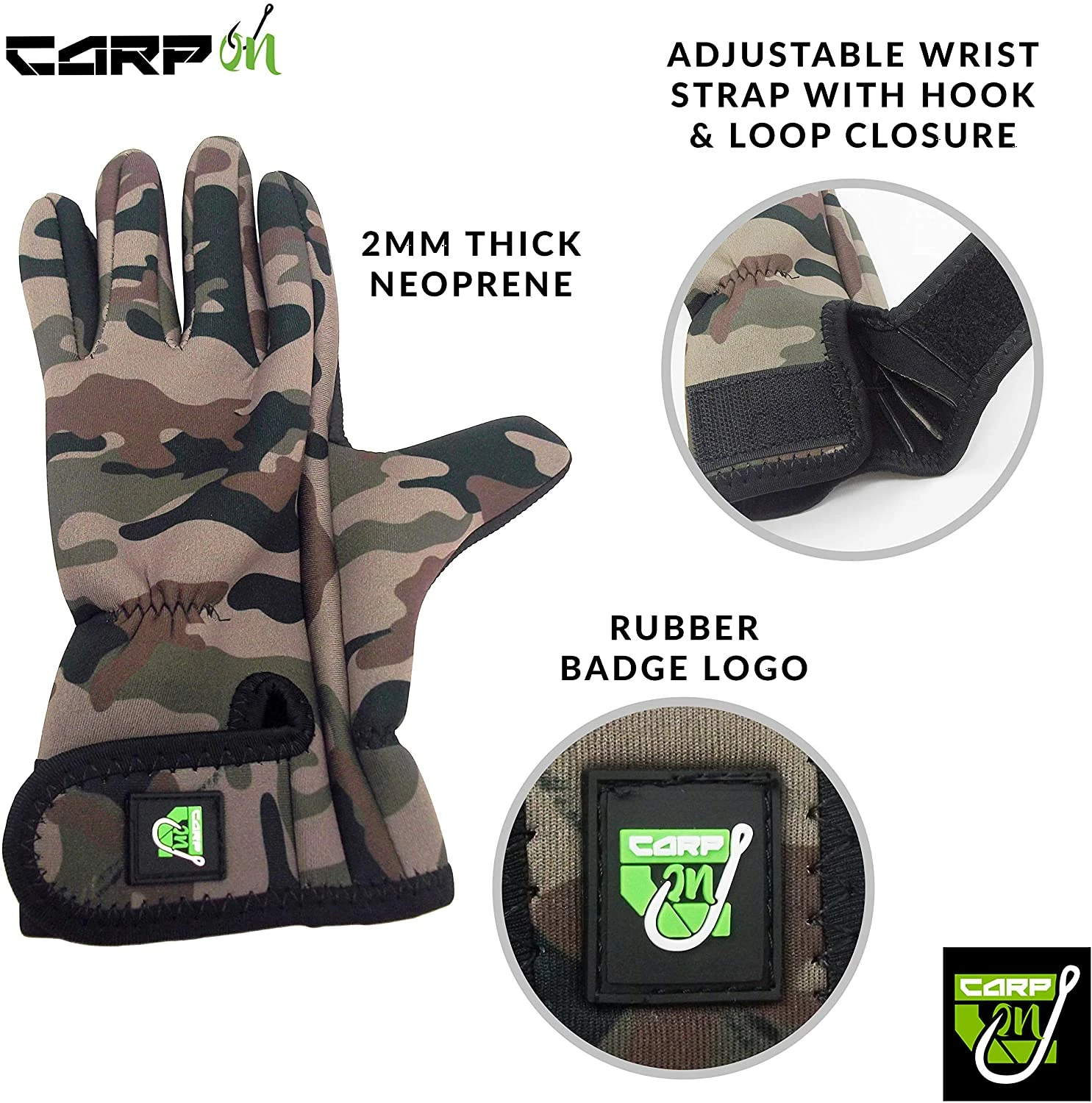 Carp On – Large Full Fingered DPM CAMO 2mm Neoprene Non Slip Gloves with Adjustable Secure Wrist Strap For Fishing and Working in Cold Damp Wet Conditions