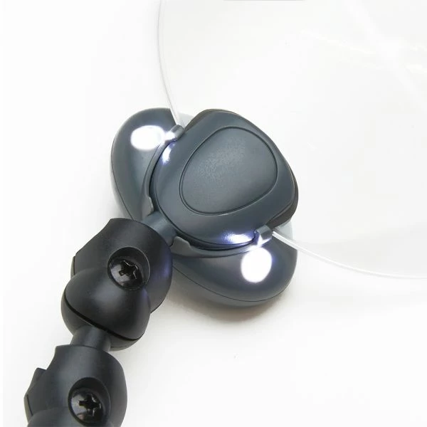 The LED Attach-A-Mag is a clip mounted, fully adjustable, LED enhanced magnifier for desks. It features a large diameter(90mm) 2x acrylic lens which offers crisp images. The LED is powered by a cell battery which is included.