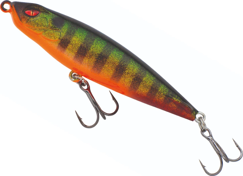 This slow sinking model (type SS) small stick bait lets you can scan all water layers and search for your target fish in different depths depending on the season. Also perfect for fishing over weedy areas and sunken wood. The sinking model should be presented somewhat more power to maintain its perfect action within the water.