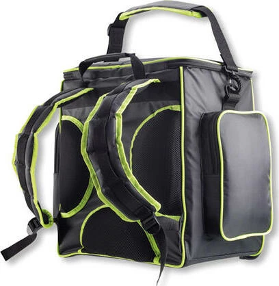Light but durable rucksack with four big tackle boxes in the main compartment and two small tackle boxes at the side. Due to the special construction of the main compartment, single tackle boxes can be removed without the upper ones sliding down. The separations are fixed with hook and loop fasteners and can be removed easily, allowing the use also of bigger boxes.
