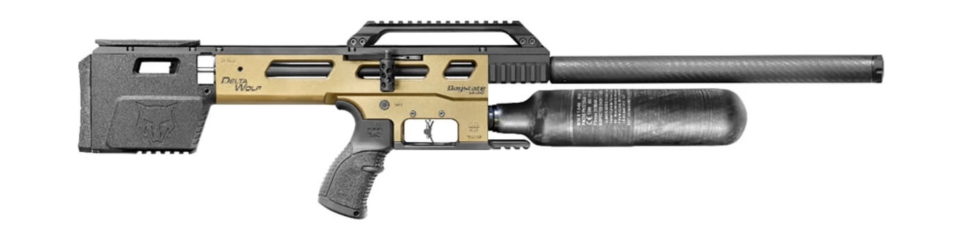 The Delta Wolf from Daystate introduces the new breed of precharged pneumatic(PCP) airguns. It merges tried and tested design with modern technology to truly create a airgun fit for the modern shooter. It trends on new ground as this is the first time in both airgun and firearms something like this has been attempted.