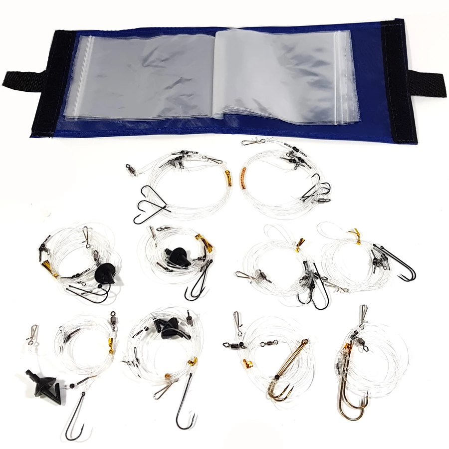 Selected specifically to offer a proven set of fish catchers the selection includes two each of some of the top bait rigs packed in individual zip-sealed plastic wallets.