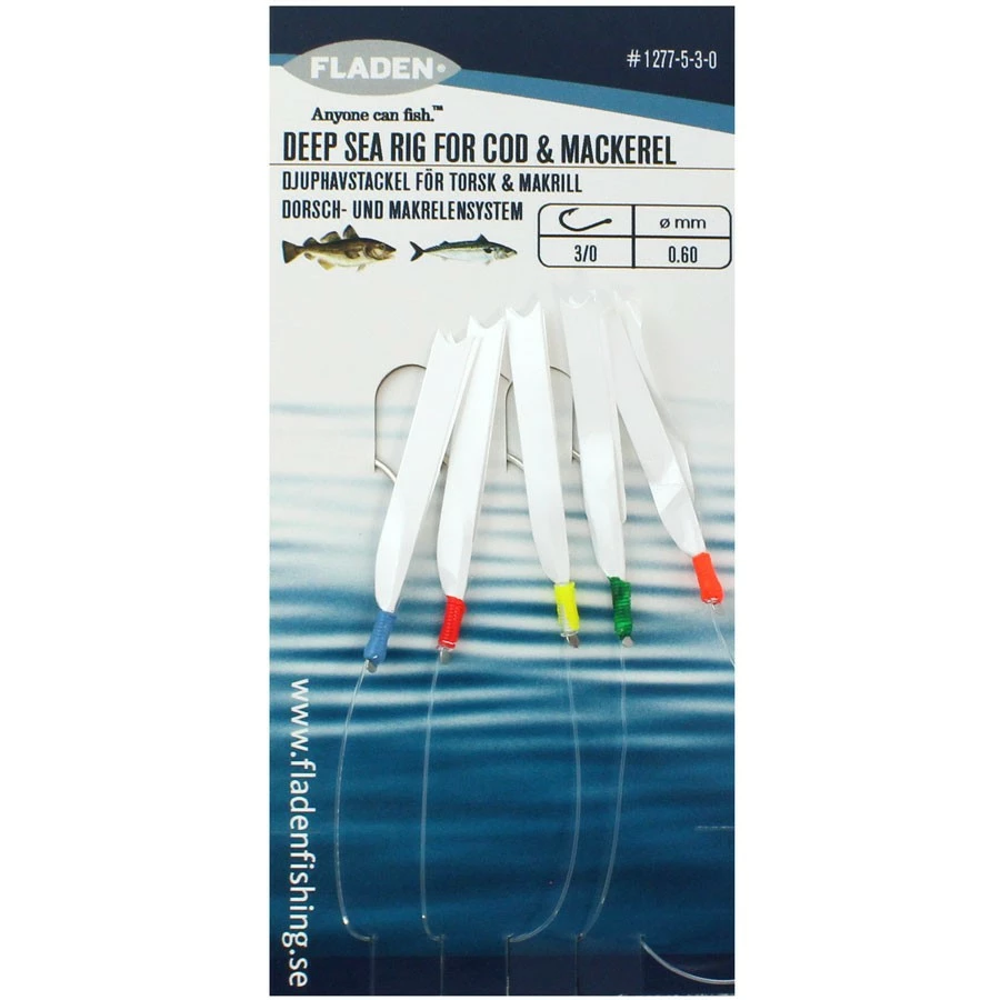The Fladen Fishing Deep Sea Rig include 5 daylight lures in each pack which are designed with a slightly shiny, solid feather and works great for attracting the likes of Cod and Mackerel.