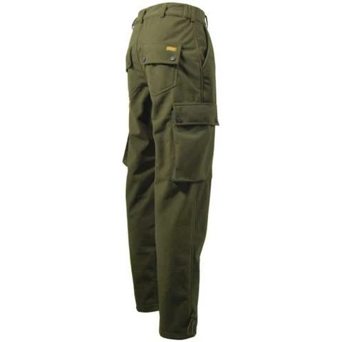Classic Hunter Green camouflage performance trousers that have a brushed finish. The trousers are waterproofed with a 8,000mm rating and breathability rating of 3,000mvp. There are two side pockets and two large cargo pockets on the sides of the trousers.