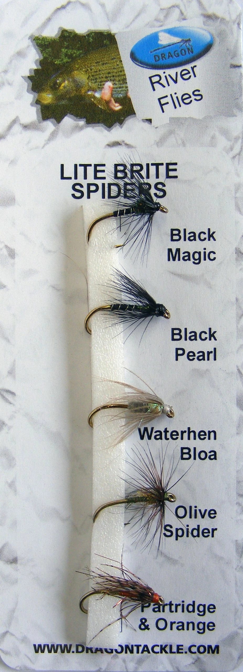 For their Litebrite Spiders, Dragon took a number of classic Spider pattern flies, and added Litebrite thoraxes for that additional bit of sparkle and attraction. Deadly on stillwaters and rivers.