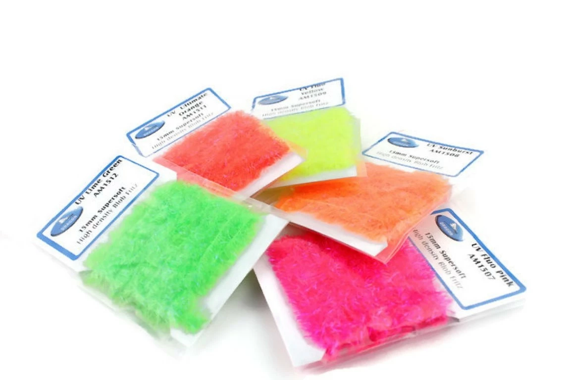 Made with the same finer fibres as Grando Supersoft Fritz but with added UV filaments, these filaments transform invisible light from the UV spectrum into highly visible reflections that change with the movement of the fly.