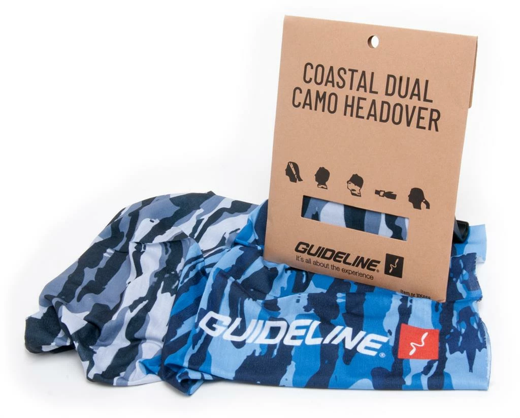 Headover made of 100% polyester which keep the shape and stay fresh long. Seamless construction in a soft, comfortable fabric. The Coastal Dual Headover features two camo patterns: In one end a grey more urban camo, at the other side a more marine camo with different shades of blue. Vertical Guideline logo on both ends. Size is 50 x 25 cm and one size fits all.