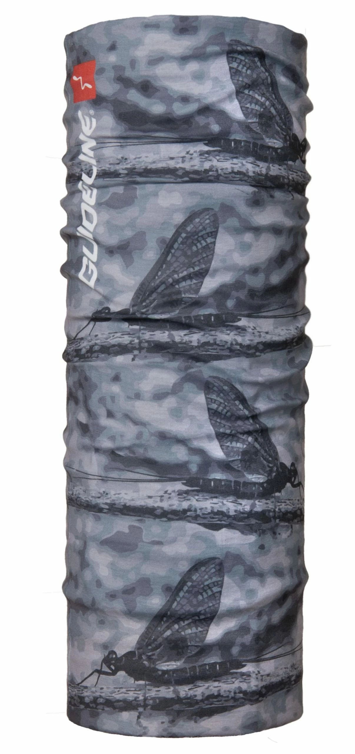 Headover made of 100% polyester which keep the shape and stay fresh over a long time. Seamless construction in a soft, comfortable fabric. The Mayfly Headover features a diffuse camo pattern with a repetitive mayfly silhouette. Vertical Guideline logo on both ends. Size is 50 x 25 cm and one size fits all.