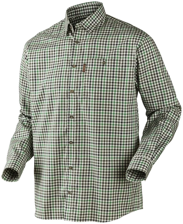 Harkila Milford Long Sleeved Shirt. A long sleeved check shirt featuring an embroidered Harkila logo and a buttoned chest pocket. Regular fit.