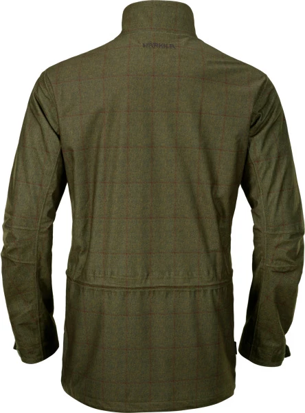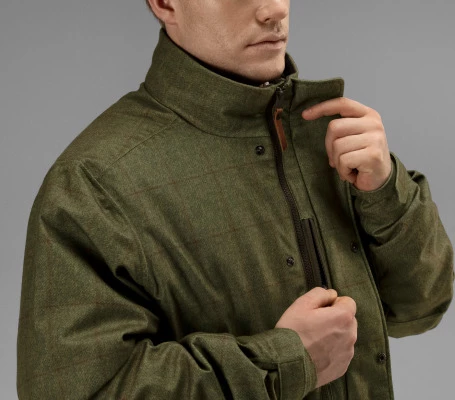 The Stornoway Shooting Jacket has a traditional cut and is made from a stretch fabric with a soft, brushed finish and a tweed print. There is a classic check lining inside, with a layer of lightweight Thermo Poly Shield™. The jacket incorporates a windproof and waterproof HWS (Härkila Weather System) membrane. This has been designed specially for hunting and is lightweight, supple and stretchable. Because both the fabric and the membrane are supple and stretchable, the Stornoway Shooting Jacket offers a lot of freedom of movement. The fabric has also been treated with DWR (Durable Water Repellent). This gives it a dirt- and water-repellent finish. The jacket has a high collar and two large front pockets with a press stud closure, Quick Load function and drainholes. Above the front pockets are zipped handwarmer pockets and there is an inside pocket with a press stud closure. The Stornoway Shooting Jacket has adjustable cuffs, as well as adjustments at the waist and bottom hem. It also has a two-way zip covered by a storm flap.