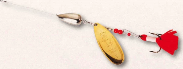 The Perca features a stainless steel wire leader which is essential when targeting larger species. A single blade is used with this lure along with a red body around the hook to help entice bites.