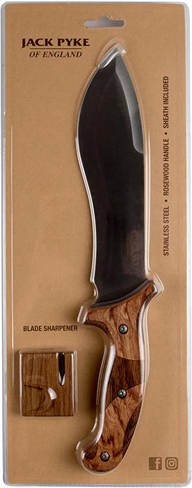 The Jack Pyke Savanna Knife is an 8.5″ Blade featuring a Rosewood handle and comes complete with a Nylon sheath. This Knife also includes a blade sharpener and a firestarter, great for those who might be stuck in a survival situation.