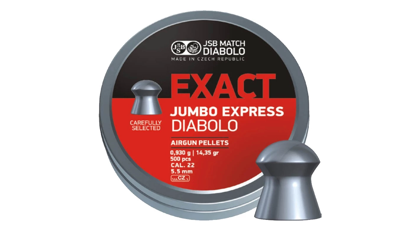 The Jumbo Exact Express Pellets are slightly lighter and therefore offer a faster pellet option. They also produce a very flat trajectory curve lending to improved accuracy.