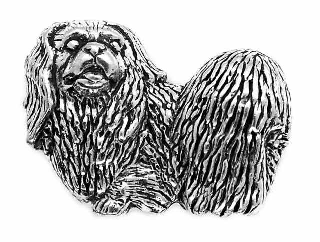 Pekingese Dog Pin Badge. Made from Quality Shiny Silvery Pewter.