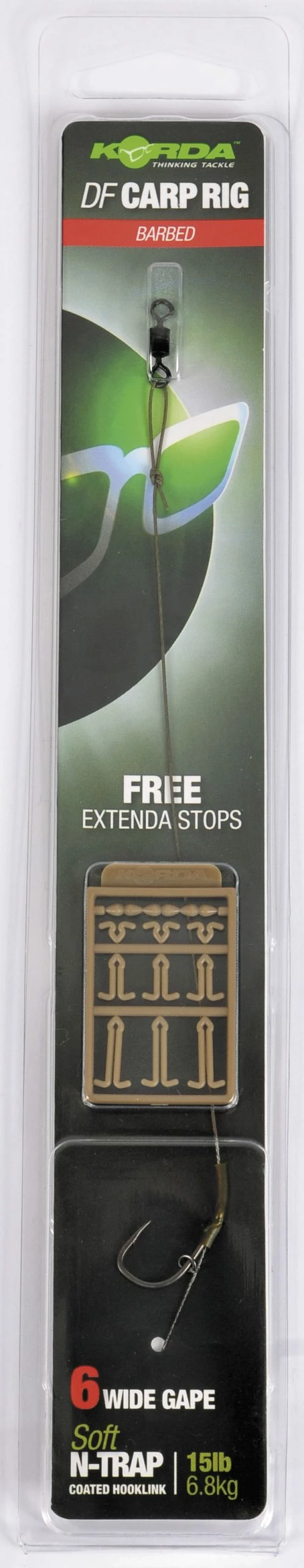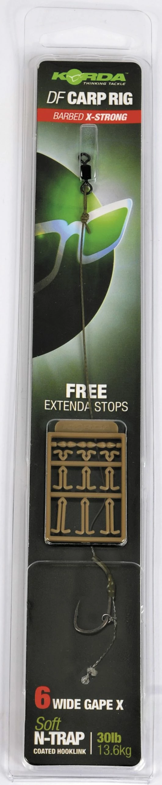 An exact, ready-tied version of the rig that Danny Fairbrass uses for the majority of his carp fishing. The DF rig features a Wide Gape hook and N-Trap coated braid and comes with free Extenda stops in the pack.