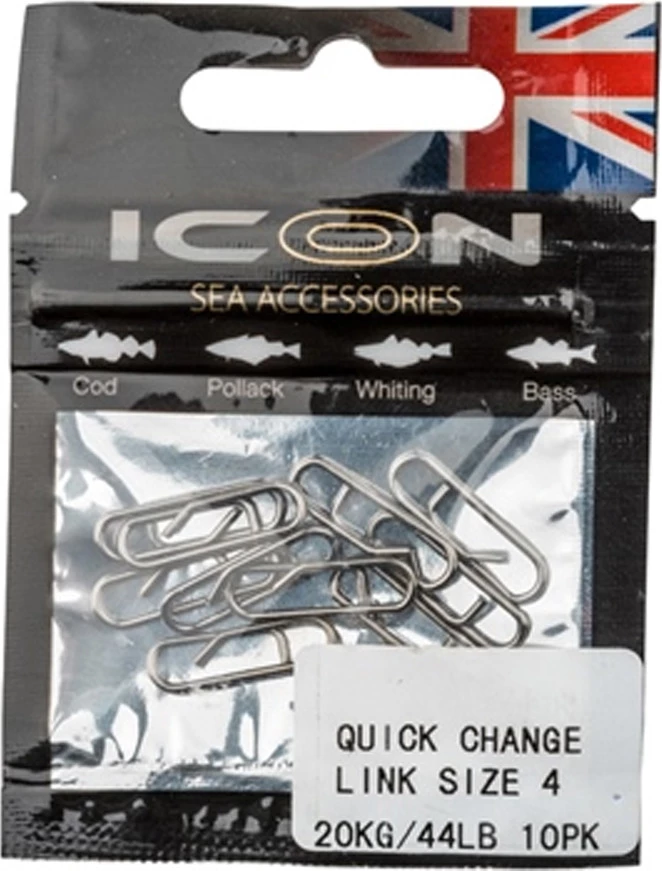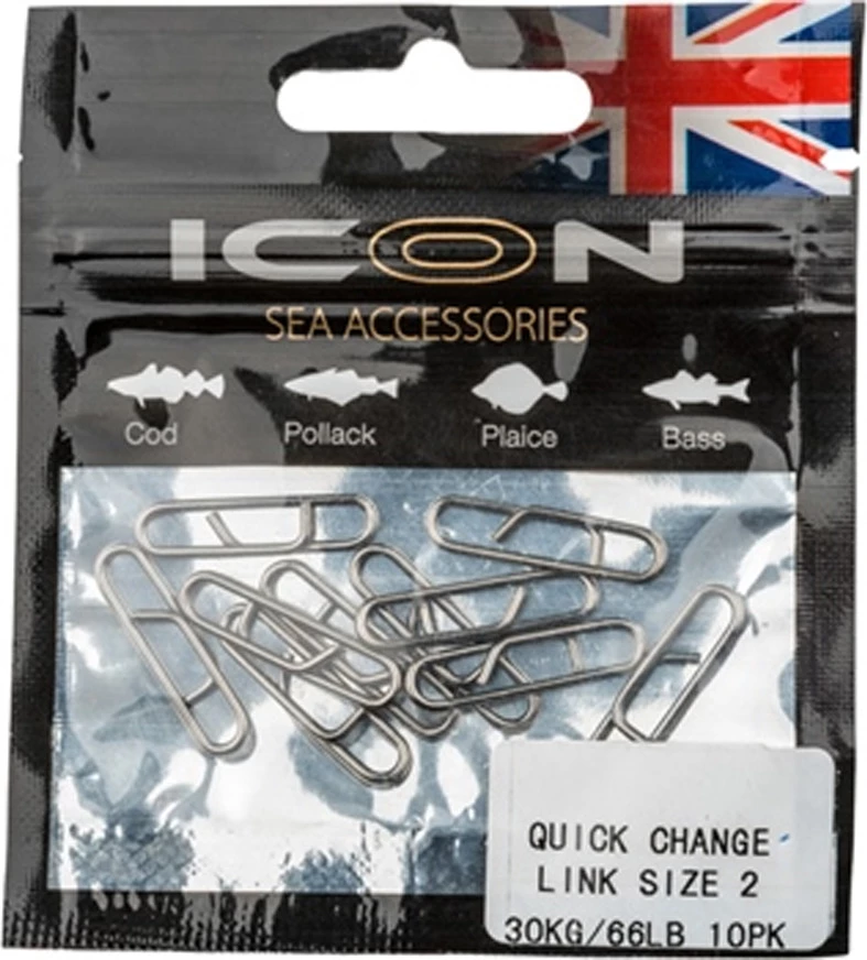 ICON Quick Change Links are handy rigging links for quick changing of your favourite rigs. Both Sizes 2 and 4 come in packs of 10.