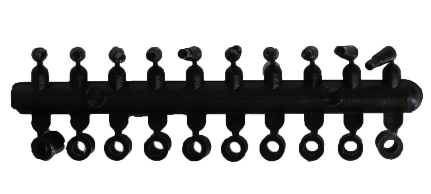 Simple, easy to use reliable line stops, perfect for stopping legers, floats etc. 10 rings and pegs supplied per pack, packaged on a plastic clip-off sprue for convenience.