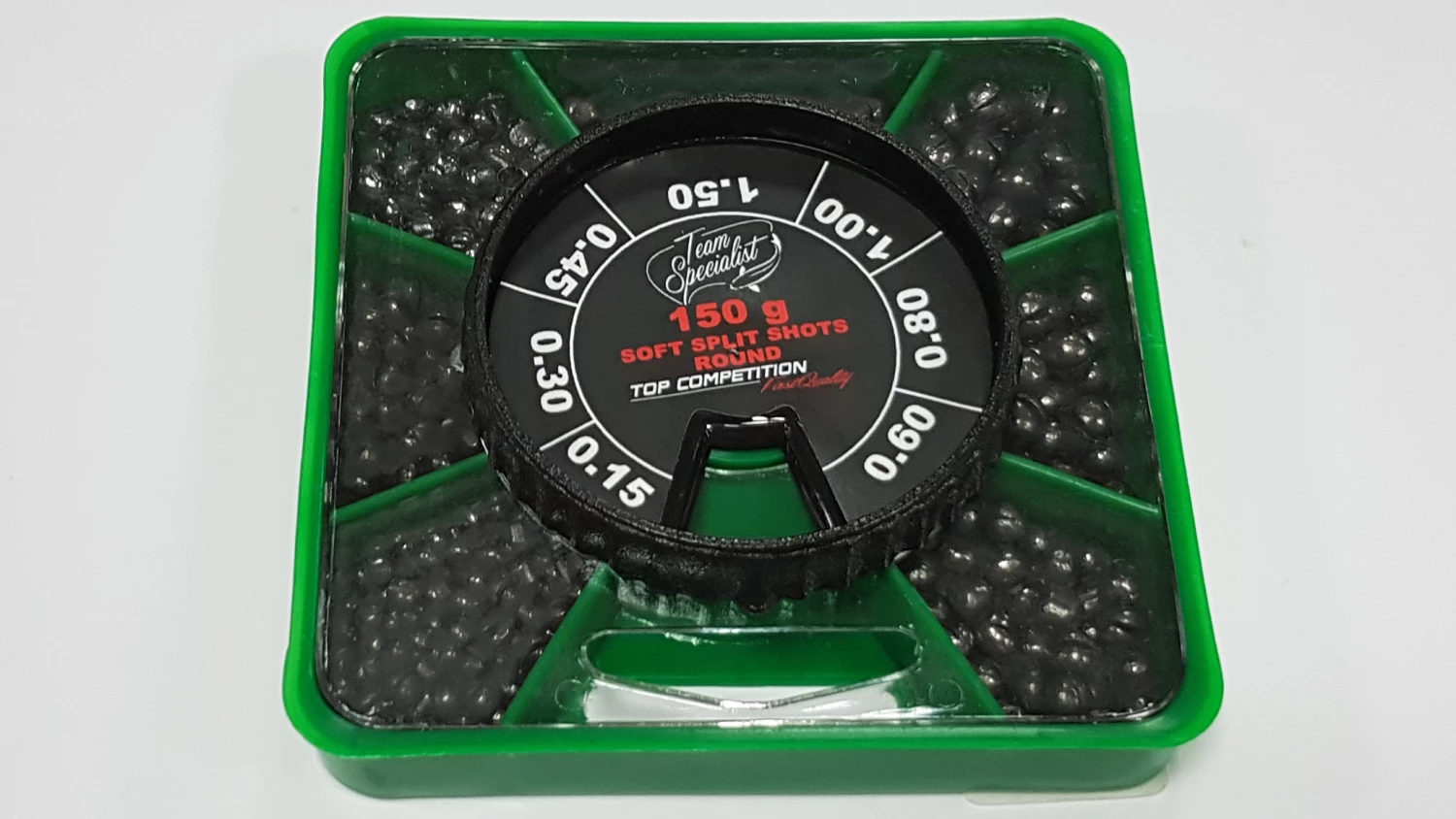 7 Section Top Competition Soft Split Shots. Shot sizes from 0.15mm to 0.60mm.