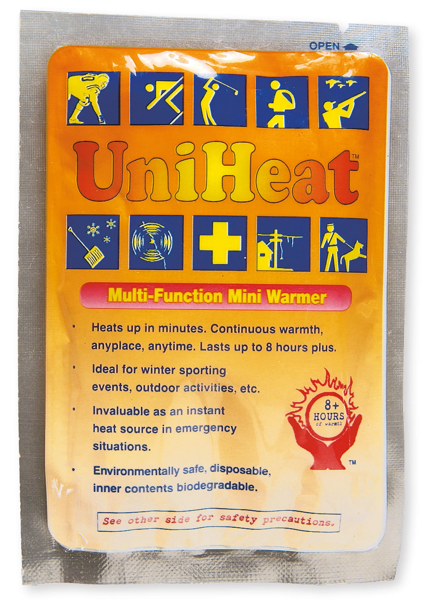 Useful twin pack of single use hand warmers. Heats up in a minute and stays warm for 2 hours. 2 hand warmers in each pack.