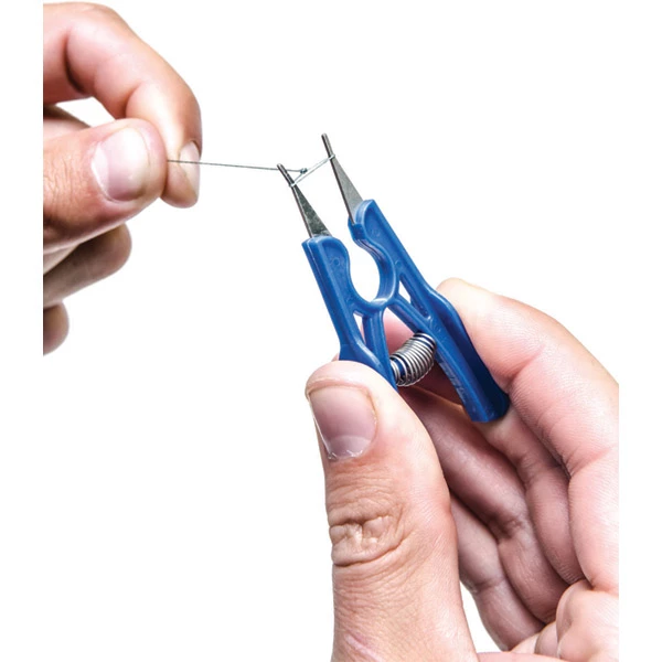 A frustration with all the anglers who use a lasso loop when hair rigging is how to re-open the lasso when it closed. Our Lasso Opening Tool has been designed to re-open your lasso loop with ease and without damaging the line. The spring- loaded design enables quick and efficient use and will open the lasso loop with ease. The two stainless steel pins have grounded edges that help prevent the line being damaged when they are pushed into the loop the open it. It will open loops from 2mm to 10mm.