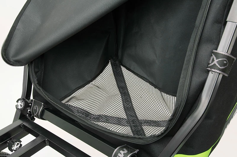 - Rear waterproof storage bag with zipped lid and drainage base.