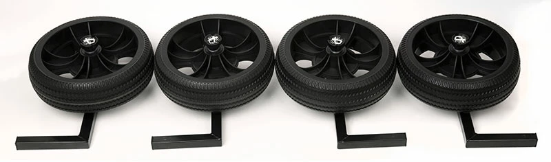 - Easy assembly, insert handles and locate the 4 wheels then tighten hand wheels
