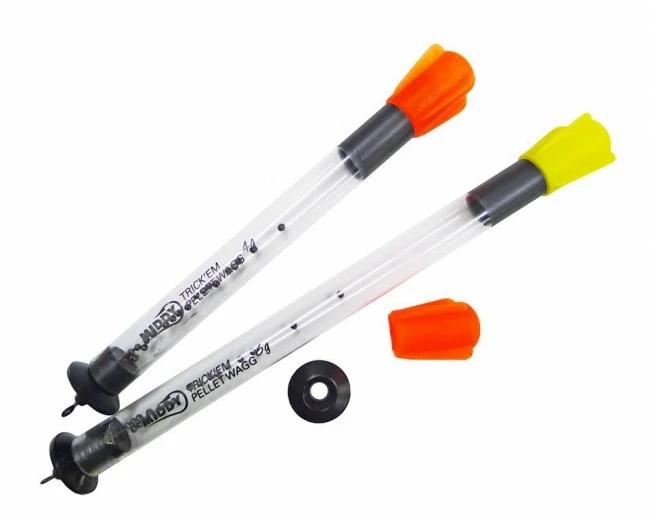 The most revolutionary floats in over 50 years! The new TrickEm pellet floats from Middy make the sound of micro feeder pellets hitting the water to attract fish. Individually packed with full instructions, you get the float with an orange vane, plus additional interchangeable black and yellow vanes. Leave the disc on at the base to make a pop and trickle sound, or remove the disc for trickle only mode.