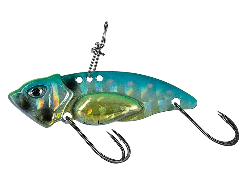 The Trago Vib is a “metal concept lure” that can be used for vertical presentations or fast retrieves due to its excellent balance and irregular wobbling action during the fall. The special paint used in the “electro-painting” process ensures maximum strength and durability in both freshwater and saltwater fishing, a territory that this category of baits has yet to explore. The double hooks have a wider opening angle, allowing for quick and secure hook-ups.