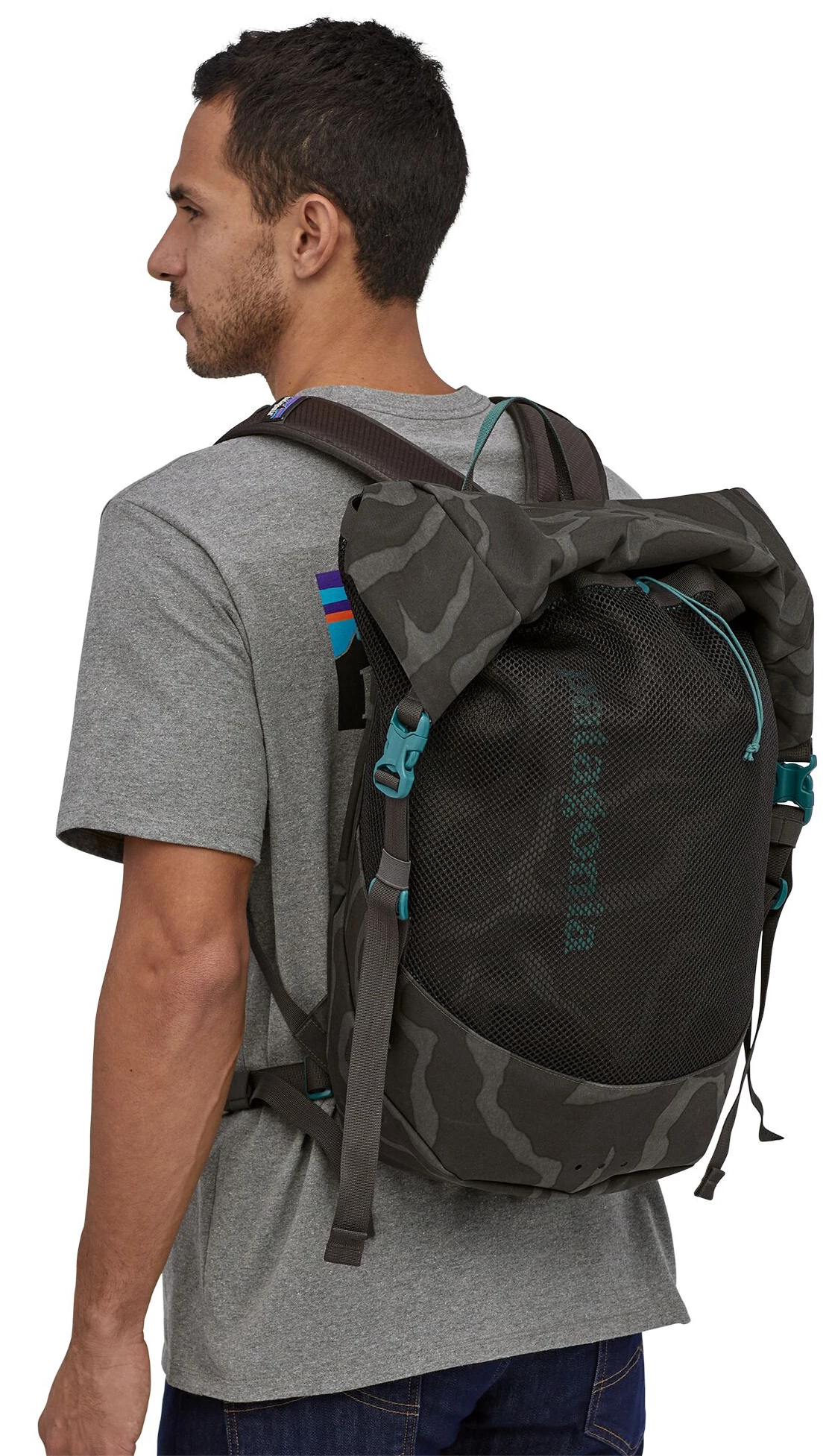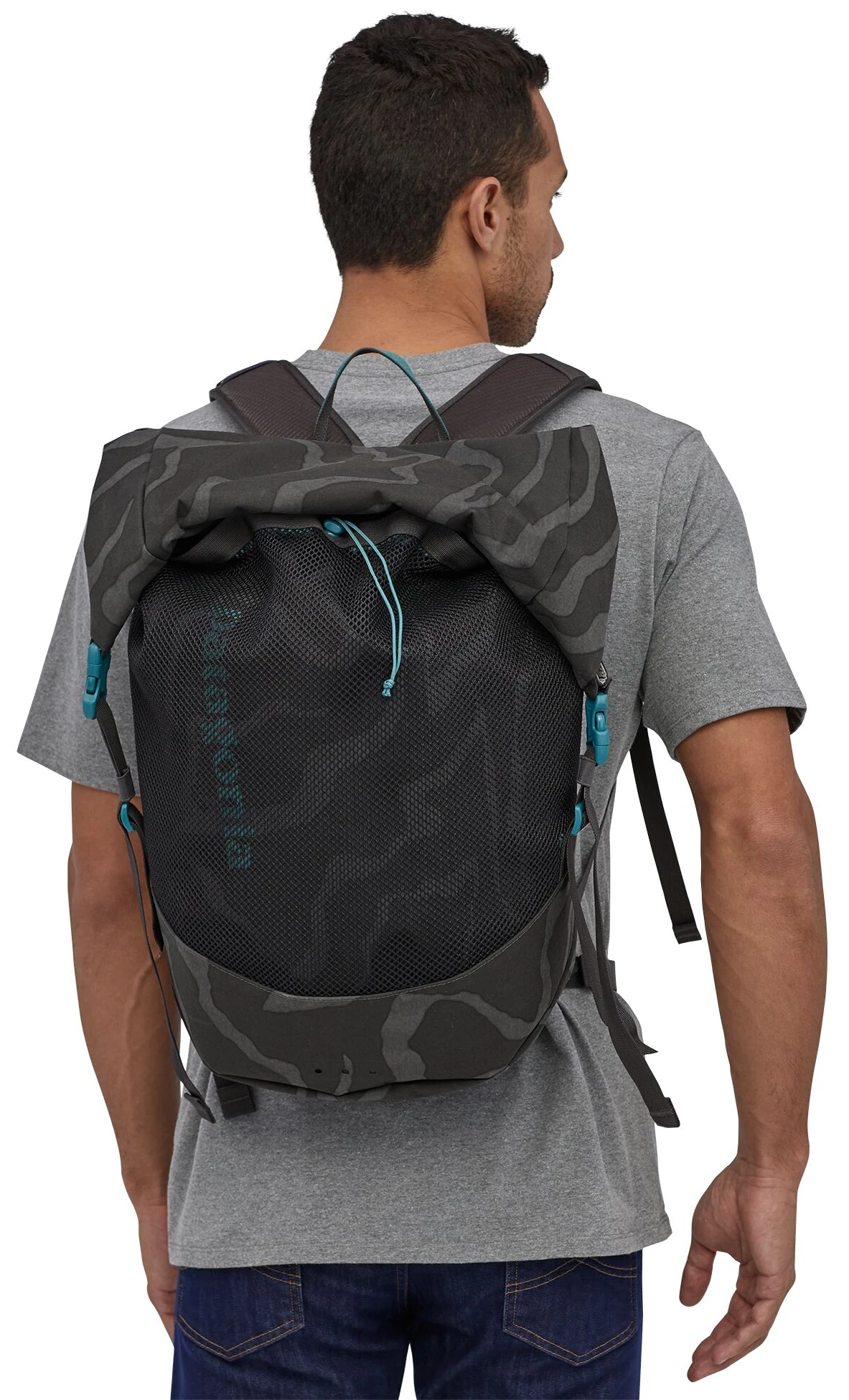 The durable, comfortable-to-carry Planing Roll Top Pack was designed to haul wetsuits and other soaked gear like your waders or waterproofs while keeping your clothing, food and towels dry and organized. We’ve used it on the bank as a Storm Proof bag to keep our essentials dry while the handy front netted big pouch keeps other gear close to hand.