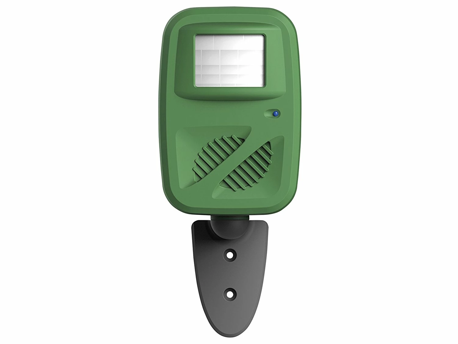 Uses ultrasonic sound to repel a variety of animals and birds at a frequency too high for humans to hear.