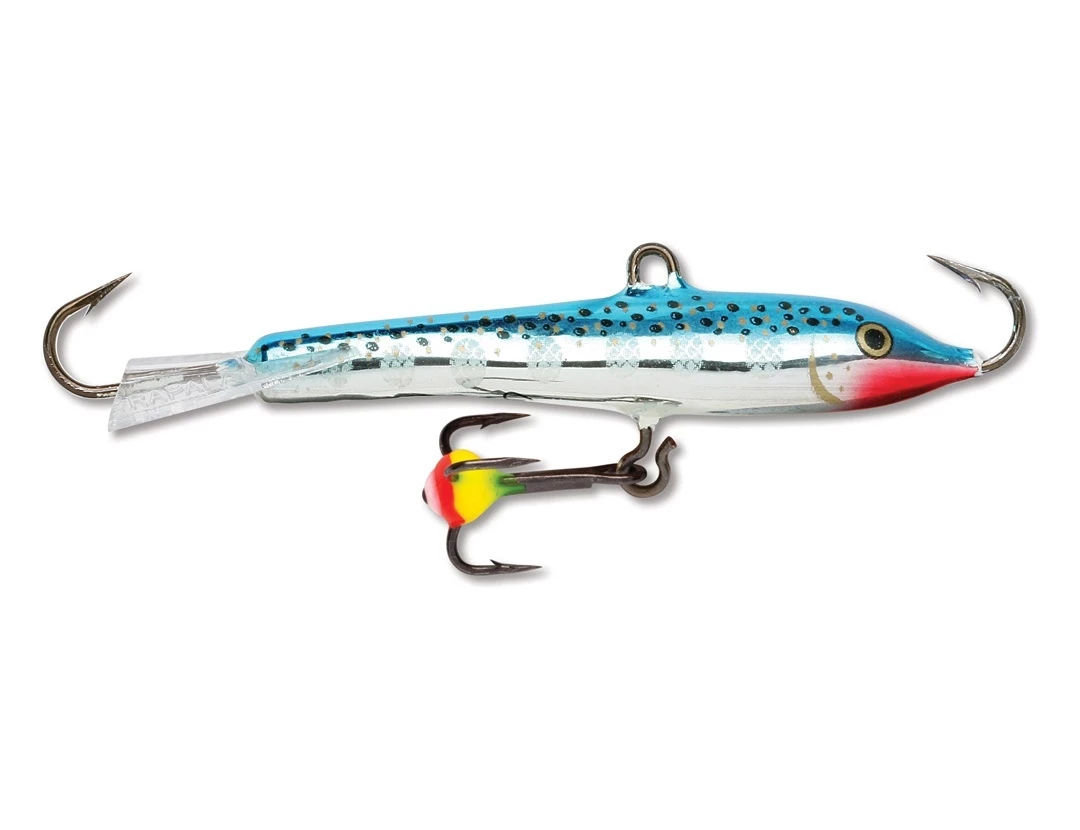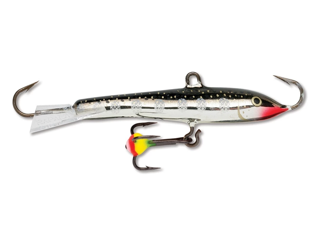 A minnow profile bait, the Jigging Rap swims in tantalizing circles when raised and lowered. Quick snap rod tip darts in sporadic motion.