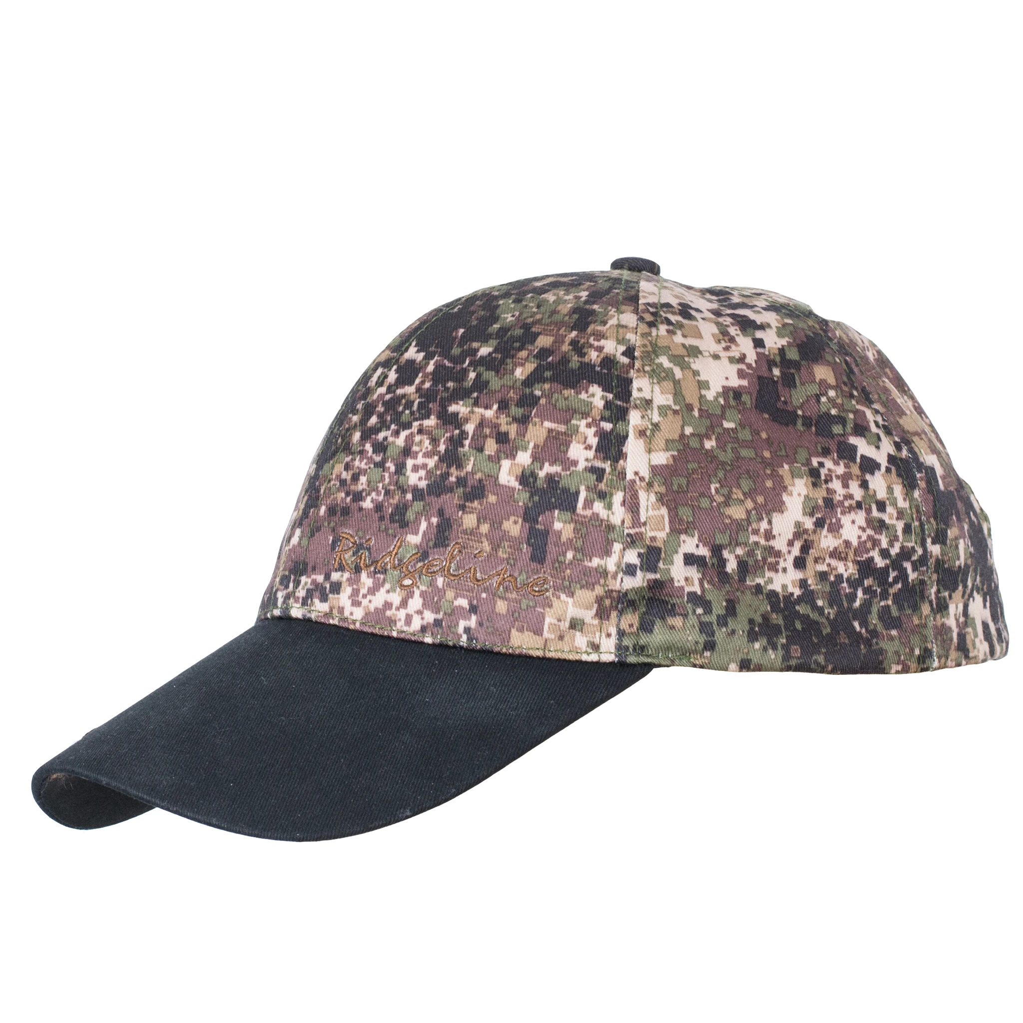 Peaked cap using Ridgeline’s Dirt Camo pattern. Velcro adjustment strap on rear and small embroidered logo on front.
