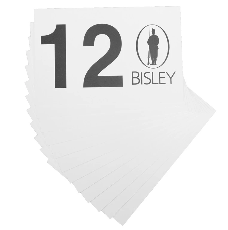 Packet of gun peg numbers ranging from 1-12 with a Bisley logo. Dimensions 115mm x 76mm.