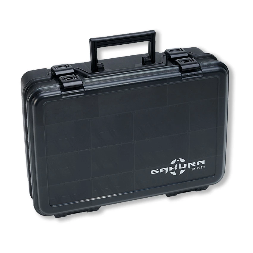 The case preferred by Japanese fishermen and travellers. Solid and compact, it can store a maximum of equipment in a minimum of space. Built on the same principle of the SK 9380, it accepts accessories and large lures. Built-in reinforced ABS it offers 18 modular compartments on the upper level and a deeper volume on the lower level. Dimensions: 38cm x 27cm x 12cm