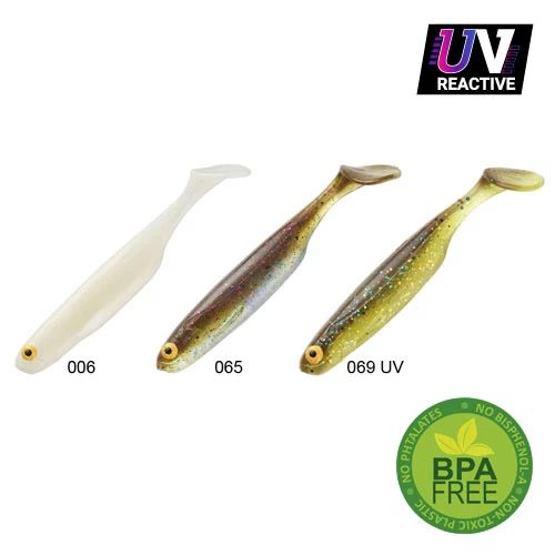 With its natural shape and small pectoral fins, the Shadura perfectly imitates a small fish. Its back and belly are very slightly split in order to facilitate the positioning of your jig heads, triple thieves or your Texan hook. But in addition to its natural appearance and incredible efficiency, Shadura has intrinsic properties that make it “clean” and recyclable!