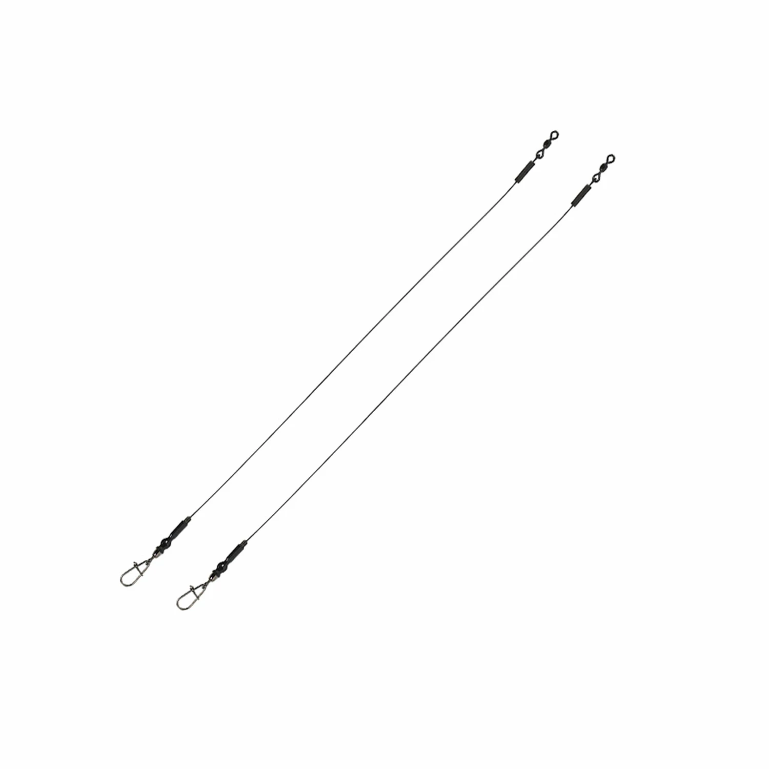 Titanium single strand traces, securely double crimped, matched with solid steel ring and Spring Carbon steel needle snaps. SG Titanium Jerkbait Trace 22cm 0.5mm 20kg Needle Snap. For the jerkbaits like Jerksters, Freestylers, deviators etc. SG Titanium Jerkbait Trace 30cm 0.7mm 25kg Needle Snap. Soft and super flexible 7strand Titanium all round pike traces, for soft and hard lures, double crimped with swivel and Spring Carbon steel needle snaps.