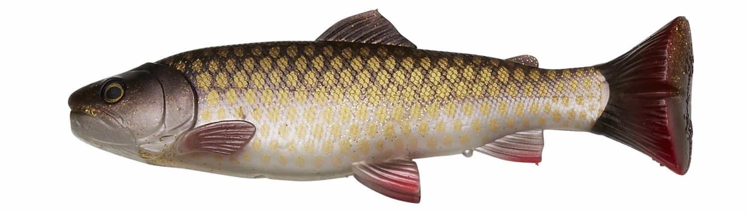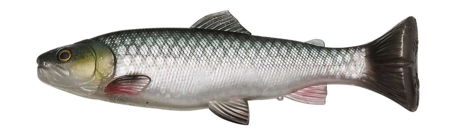 Based on our famous 3D Trout range, Mads has altered and tuned the head shape for corkscrew rigging adding handcrafted details, a perfect corkscrew entry In the mouth, our unique Pulsetail action with a rattle slot tail. The lure casts very well and can also skip well under over hanging trees.