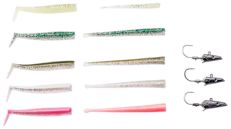 Savage Gear’s Sandeel Kit. Contains 25 pieces of various fishing items, including: