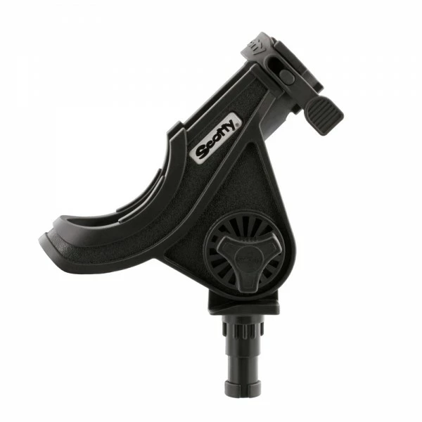 This superb Rod Holder from Scotty is purpose designed to hold any type of lure rod. Holds a bait caster reel in a cushioned cradle. A slot in the front of the rod holder allows for a spinning reel to be securely held in position. The rod holder design has a side mounted flange, which leaves the bottom open. This allows for the rod holder to accommodate trigger grips. Pistol grip rod butts easily clear the sides of the rod holder for quick rod retrieval.