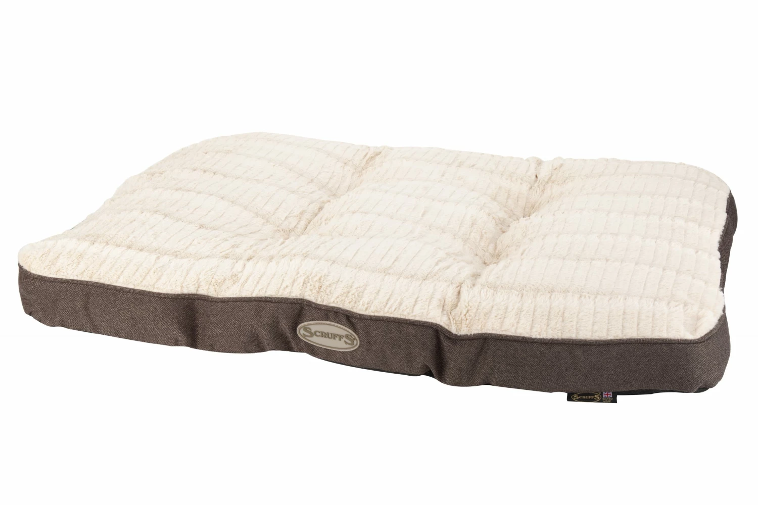 Scruffs Ellen dog beds have a textured fake fur outer cover with a contrasting tweed outer cover. Warmth and comfort are provided by the bed’s sleep area, which is lined with sumptuous soft fur. The front of each bed is completed with a soft-feel Scruffs logo. The Scruffs Ellen dog mattress is filled with 100 percent recycled polyester filler that is fastened in four places, resulting in improved cushioning and durability. The base of the Scruffs Ellen dog bedding is non-slip.