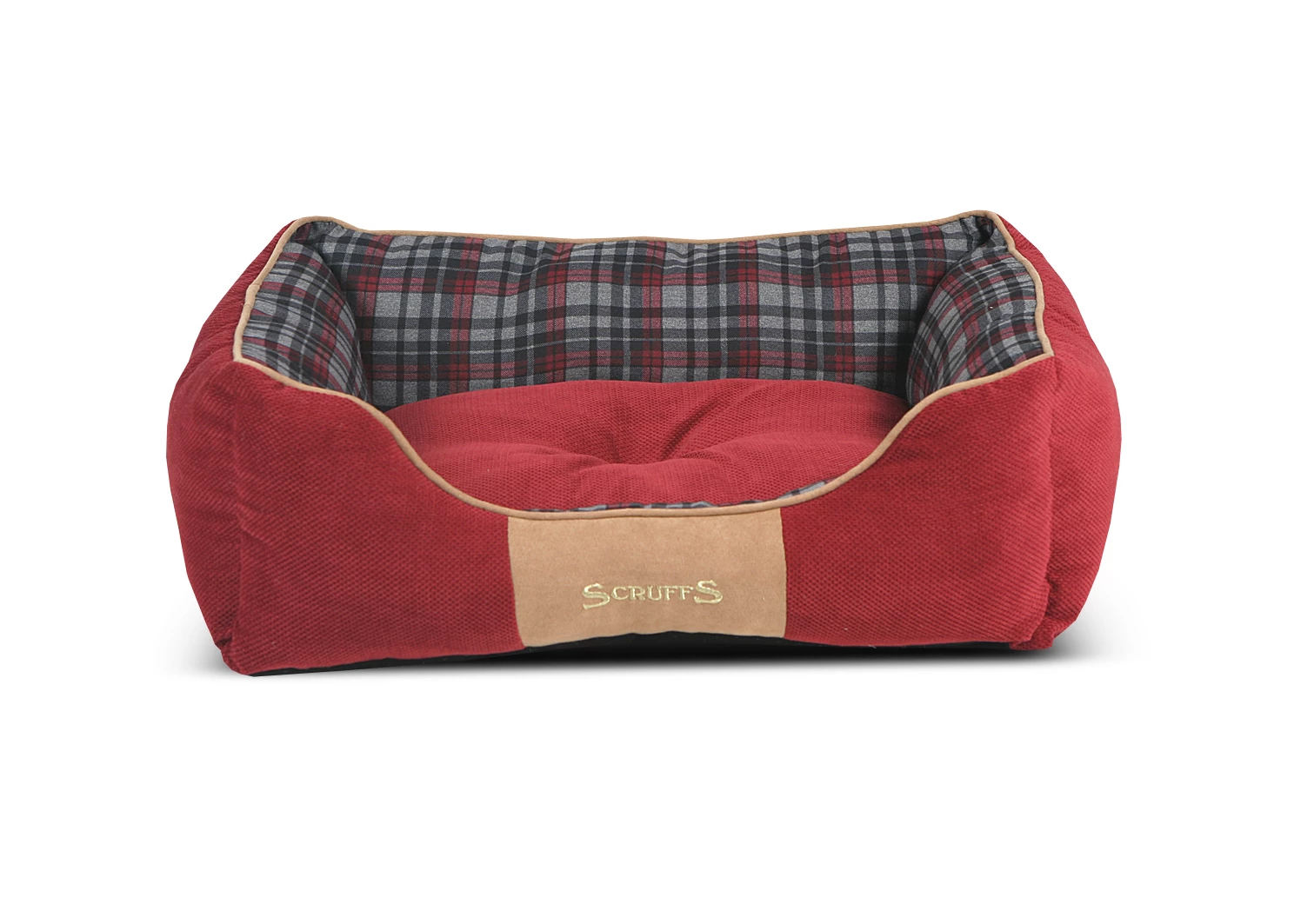 The Scruffs Highland dog bed series is mostly made out of a lush chenille fabric. A striking tartan design is blended with faux suede piping and a centre patch with an embroidered Scruffs emblem to compliment the lively colours. A non-slip base is included with each bed. The one-piece structure of the box bed provides increased strength and durability during washing.