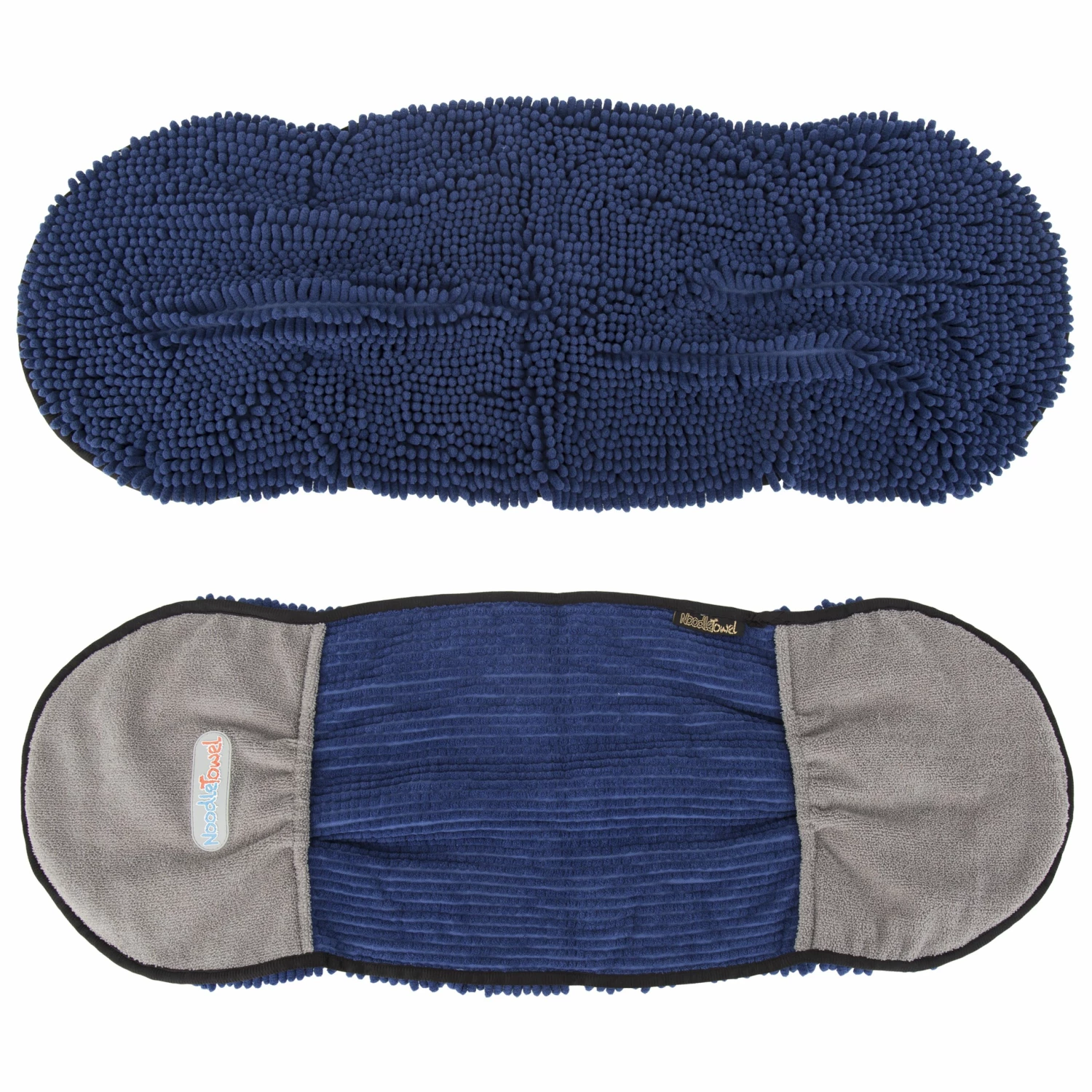 This grey Scruffs Noodle Drying Towel is very absorbent, swiftly absorbing excess moisture and allowing your dog’s coat to dry after a wet and muddy walk. The ‘noodles’ on the dry towels are made of micro-fibre chenille. The micro-fibre material is made up of millions of textured, ultrafine strands that are woven together to provide a surface area far larger than the dry towel’s actual size. This large surface area provides the dry towel its super-absorbent capabilities, allowing it to soak up water like a sponge while also boosting airflow, reducing drying time.