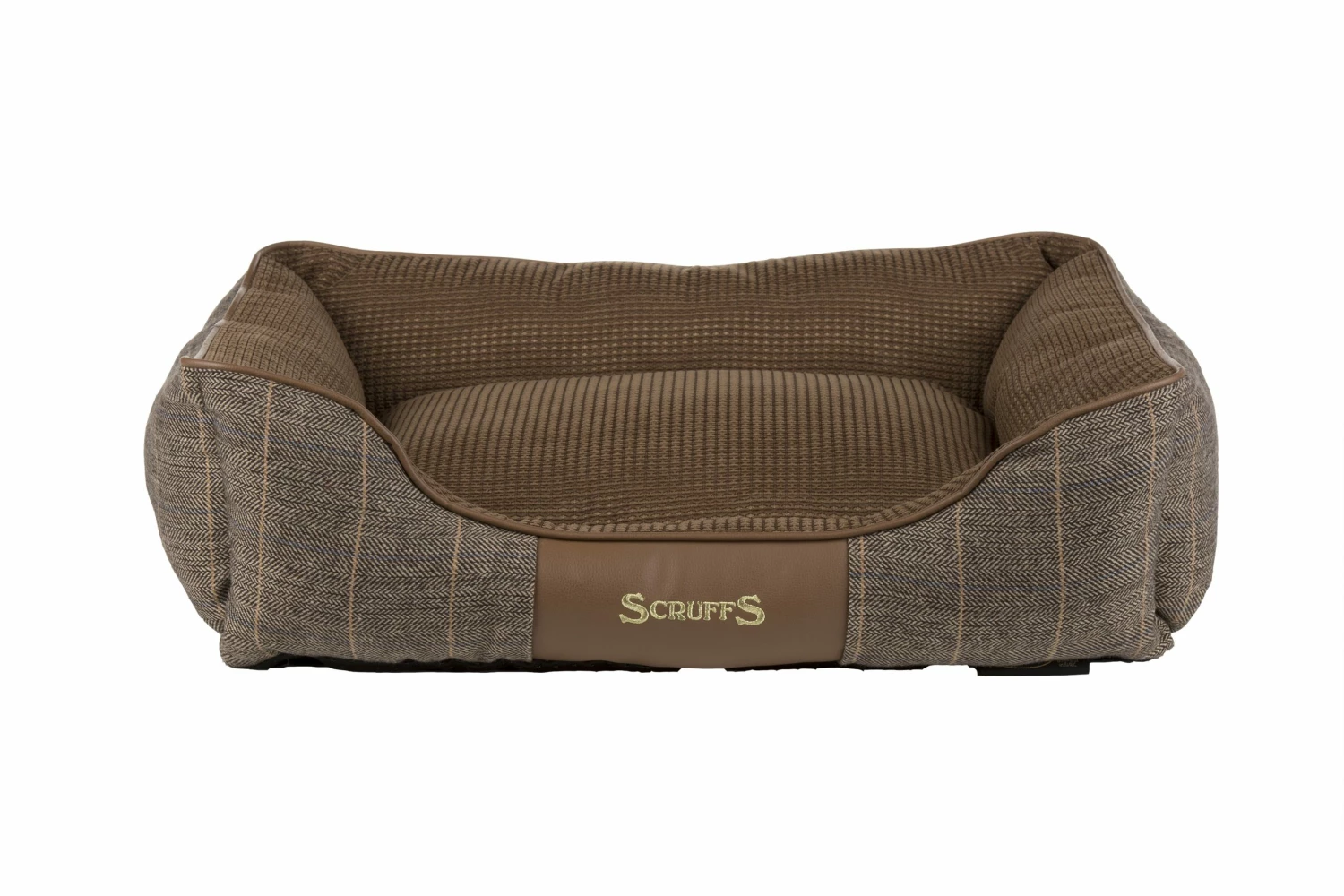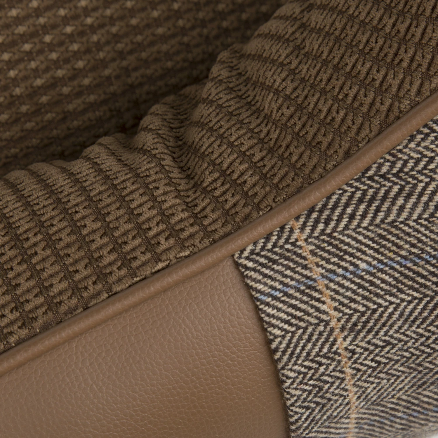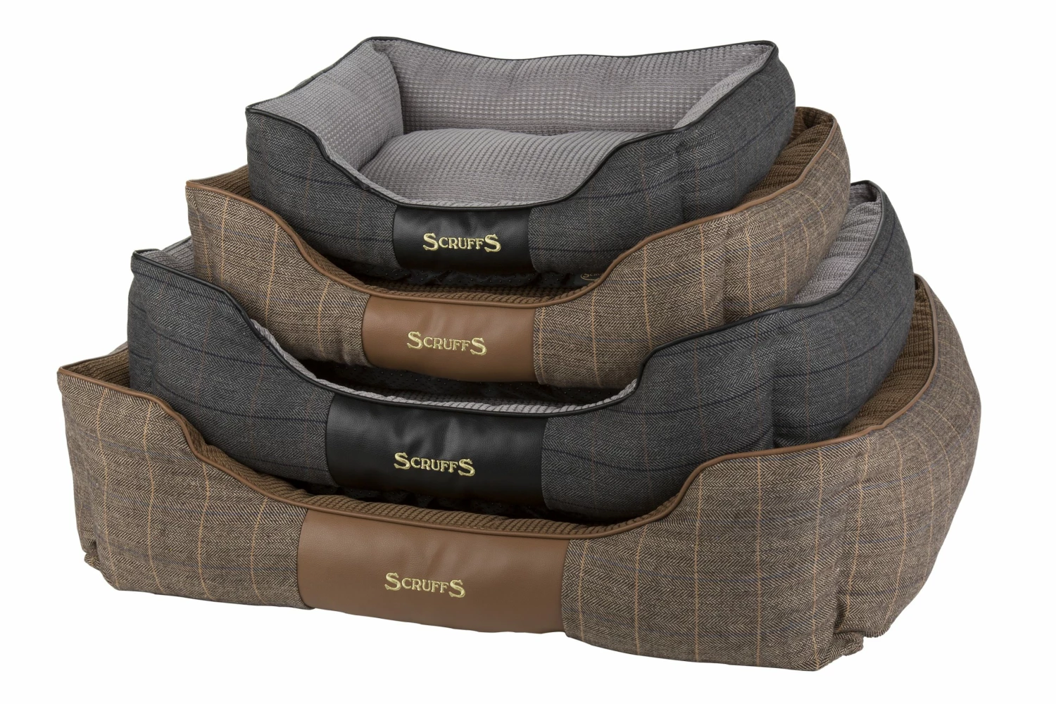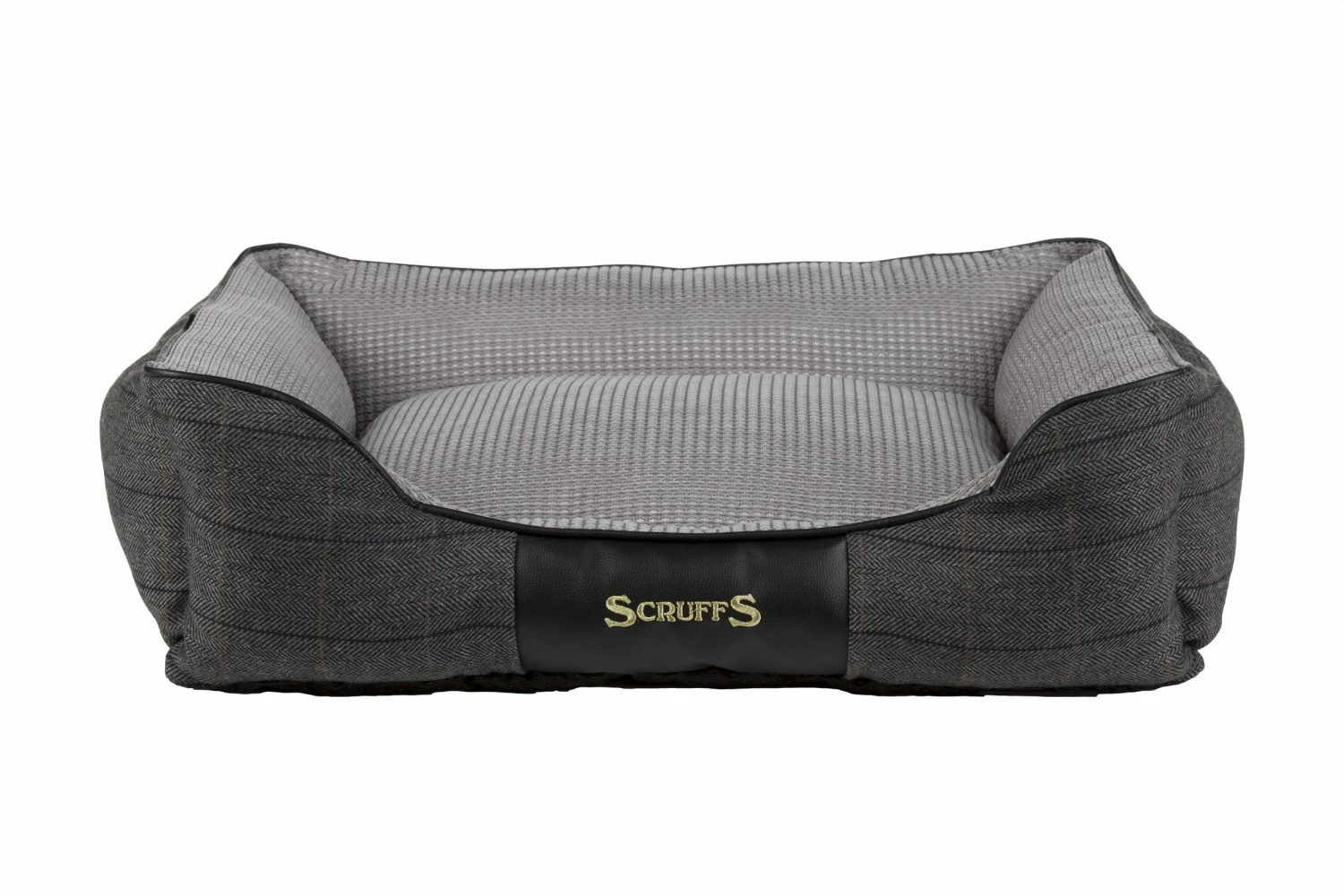 In line with current home décor trends, the Scruffs Windsor collection is centred around two classic colorways. A rich tweed outer sidewall is coupled with a contrasting chenille lining on the mattresses. The mattresses are finished off with a fake leather centre patch with embroidered Scruffs logo and faux leather piping. A non-slip foundation is included with each bed. The one-piece structure of the box dog bed provides increased strength and durability during washing.