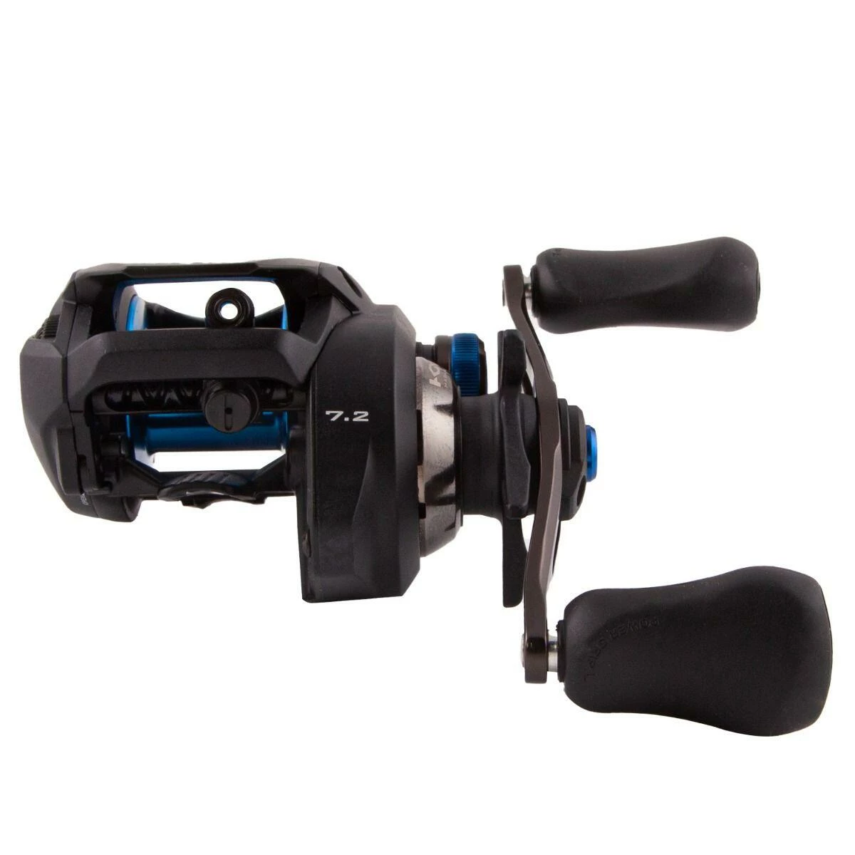 The new Shimano SLX is the replacement model for the CaenanA. With a significantly smaller body (22%), the SLX has a very ergonomic shape and is perfect for palming the reel in your hand, making it very comfortable to fish with whole day long. This Mid-Entry price level reel is a perfect all-round reel which can be used for all kinds of fishing and would be great for an anglers first baitcasting reel experience. It is available in three different gear ratios (normal gear 6,3:1 High Gear 7,2:1 and Extra Gear 8,2:1). The XG version even has a little longer handle (48mm instead of 45mm), giving it some more cranking power. The SLX has a very smooth maximum drag of 4,5kg, giving it enough strength and power to reel in your trophy fish.
