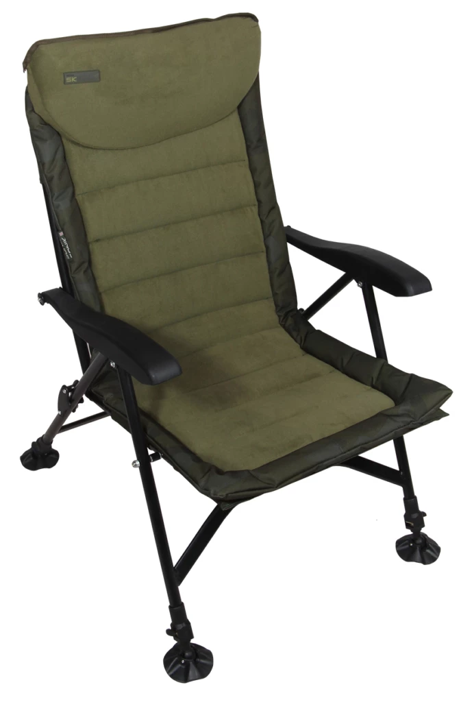 The SK-TEK Recliner Armchair is the ultimate in bankside luxury. Fully reclining with 8-positions, just lift up the arms recline and lock into place. The high seating position and seat back offer plenty of support and with all four legs having extendable locking feet the chair is stable on any terrain.