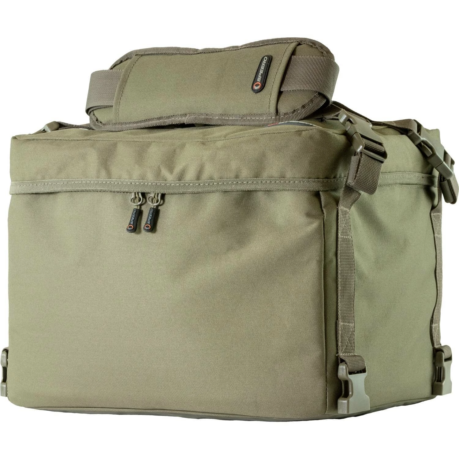 A larger version of our standard cool bag, the modular cool bag was designed for the session angler. External pockets designed to accept your cook wear, stove etc., isolating the food in the main compartment. As with all bait/cool bags in the range, it has a durable wipe clean liner as a standard part of the Speero THERMO cooling system.