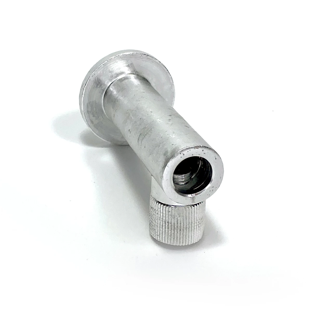 A useful Aluminium stage stand, supplied together with the fixing screw. This lets you use your existing range of banksticks on decking, pontoons etc.